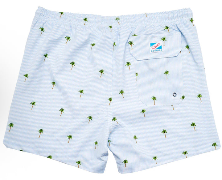 Bermies - Palms Stripes (blue/white) swim trunks