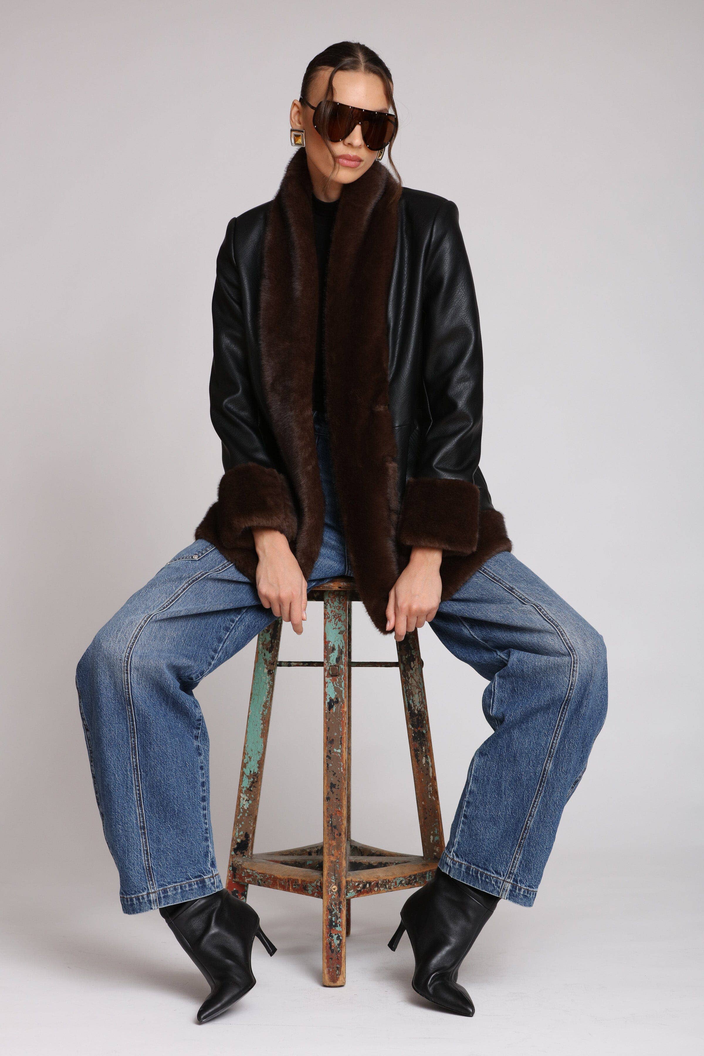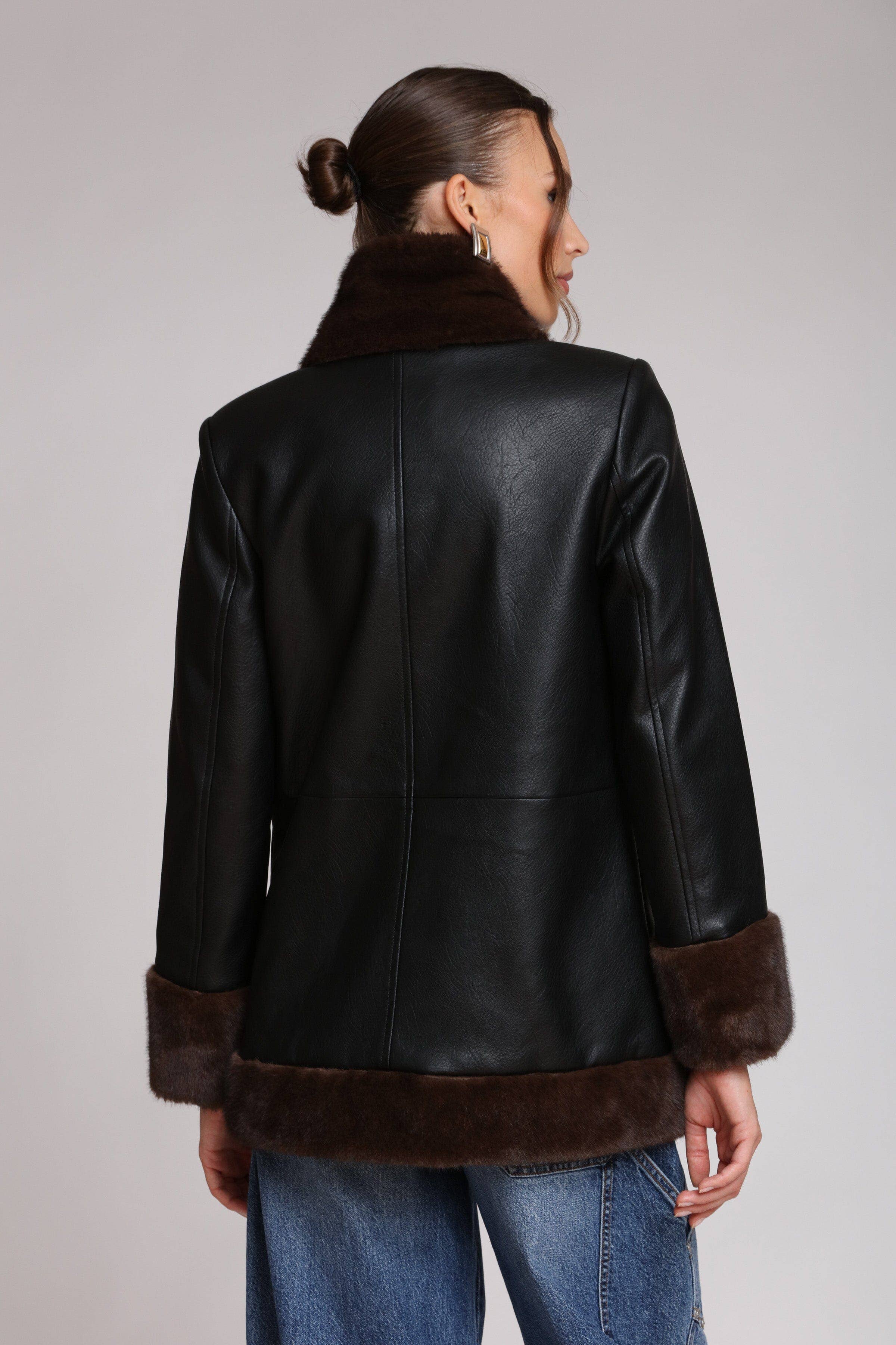 Avec Les Filles-Faux Fur Trimmed Faux Leather Jacket